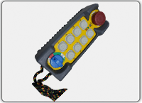 將電量飽滿之AA型(3號)電池。 注意: 發射機具有電源監控功能 , 並以LED指示燈顯示電源狀況 :(1). LED指示燈亮綠色表示電量充足 , 發射機可正常操作。 (2). LED指示燈亮黃色表示電量即將不足 , 此時應暫停工作 (例如將吊掛物品下降至地面) 並儘速更新電池。 (3). LED指示燈亮紅色表示電量不足, 此時發射機會自動發出停信號 , 控制接收機關機 , 故操作者應避免操作 中發生電池電量不足的情形 , 以維工作之安全。 使用方法操作接收機電源選擇: